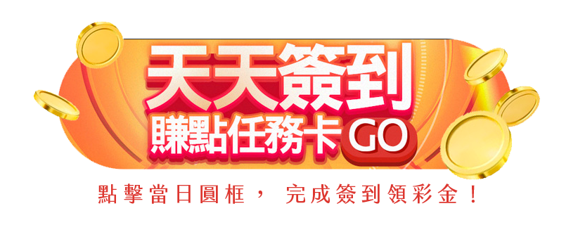 3Q正式會員,每日00:00:00-23:59:59 期間內登入會員任務頁,並且點取簽到任務,可以獲得發財轉運金